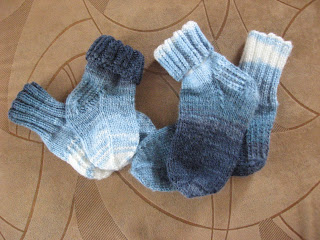 Štai ir abu mažieji turi naujas kojines. Kažkaip per žiemą abu išaugo... :D O dar į aulinukus jų tikrai prireiks. Na dar ir su atsarga kitam rudeniui numezgiau. :D